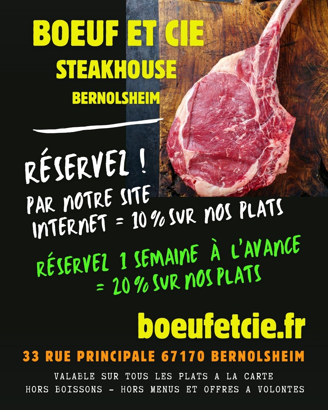 Parce que nous souhaitons être incontournable en Alsace du Nord en matière de goût et de qualité, venez découvrir nos entrecôtes, filets de boeuf. rumsteaks et pour les amateurs nos côtes de bœuf ou planches cannibales de 4 viandes différentes .