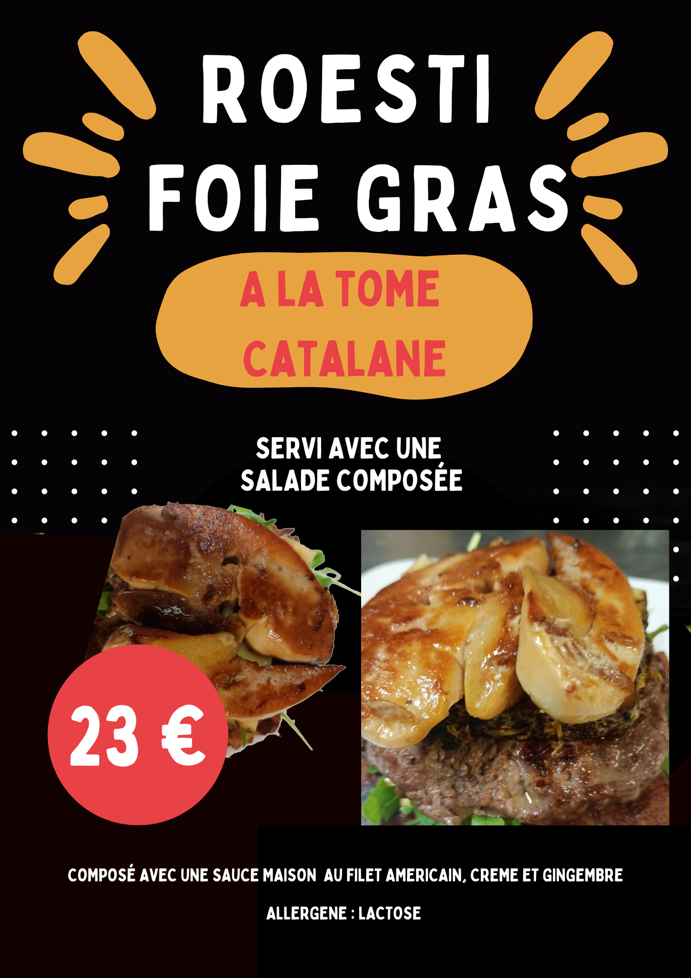 Vous trouverez chez nous également des spécialités régionales, comme les rognons ou la tête de veau, cordons bleu, au munster ou comté, sans oublier les burgers "roesti" au foie gras, le magret de canard aux poires caramélisées, ou le spécial boeuf-choucroute-munster représentant parfaitement notre région.
