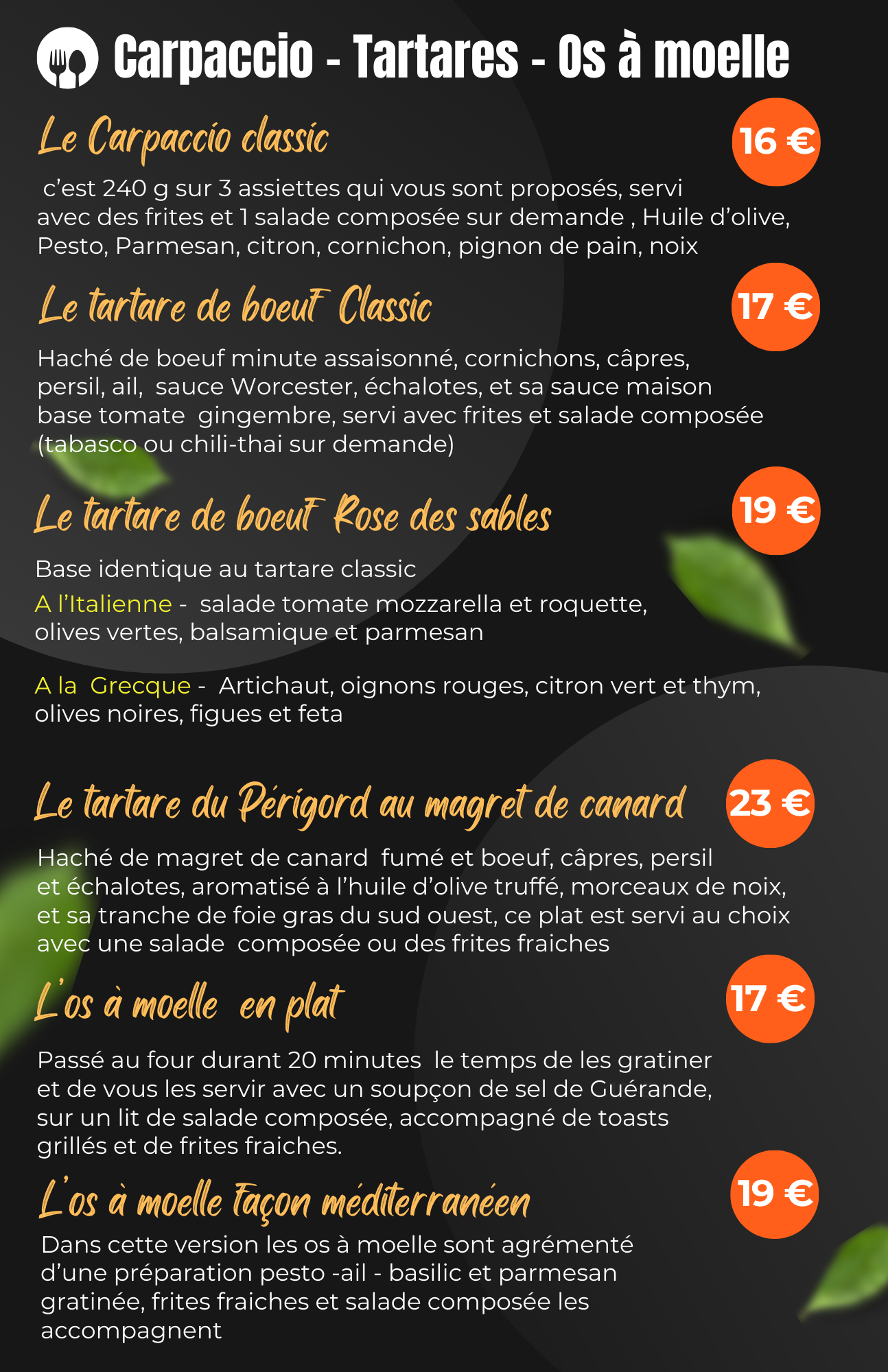 Pour les amateurs du "à volonté" vous trouverez chez nous Carpaccio et onglet de boeuf